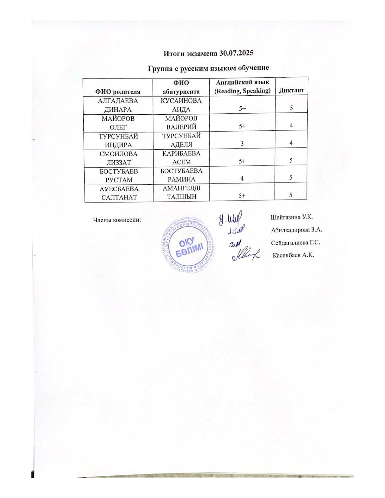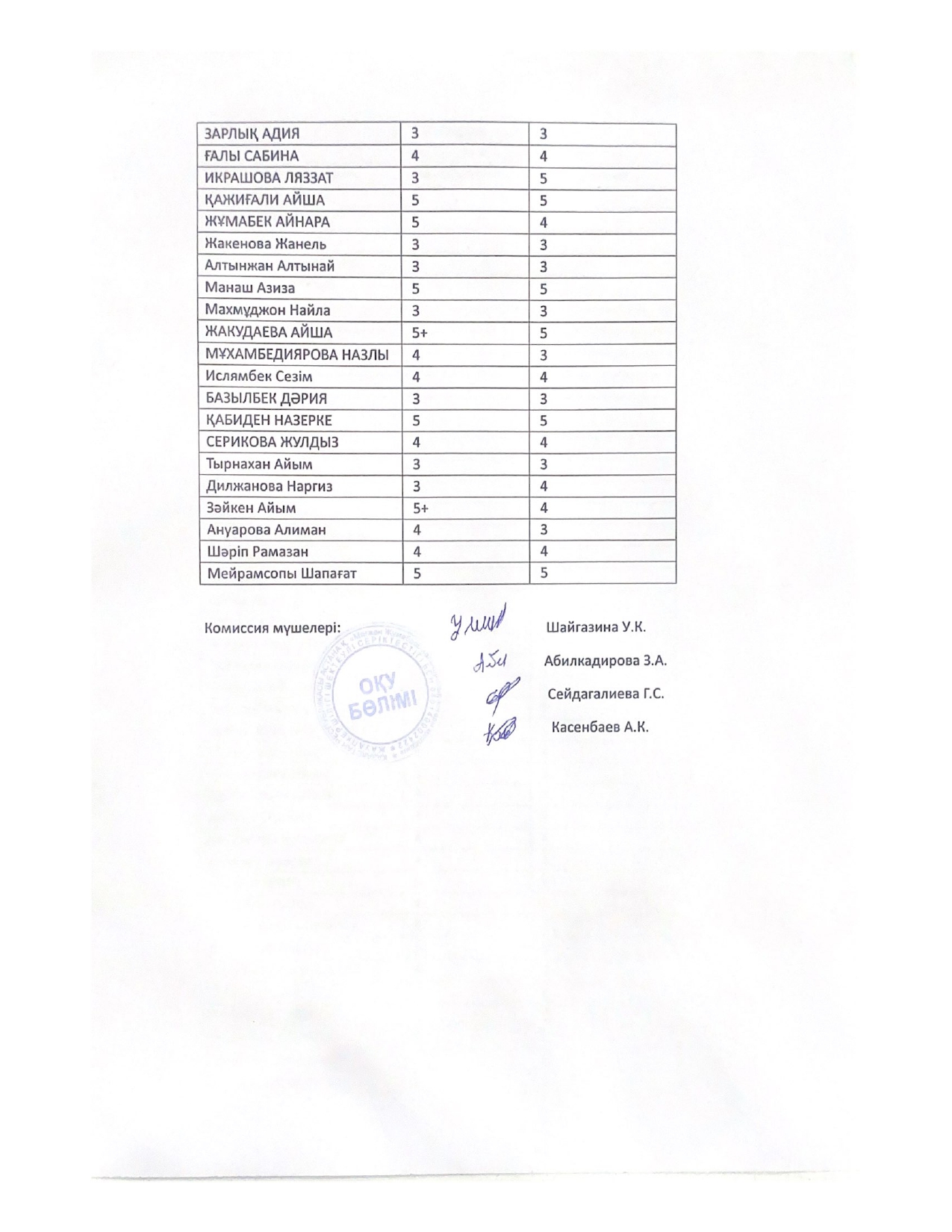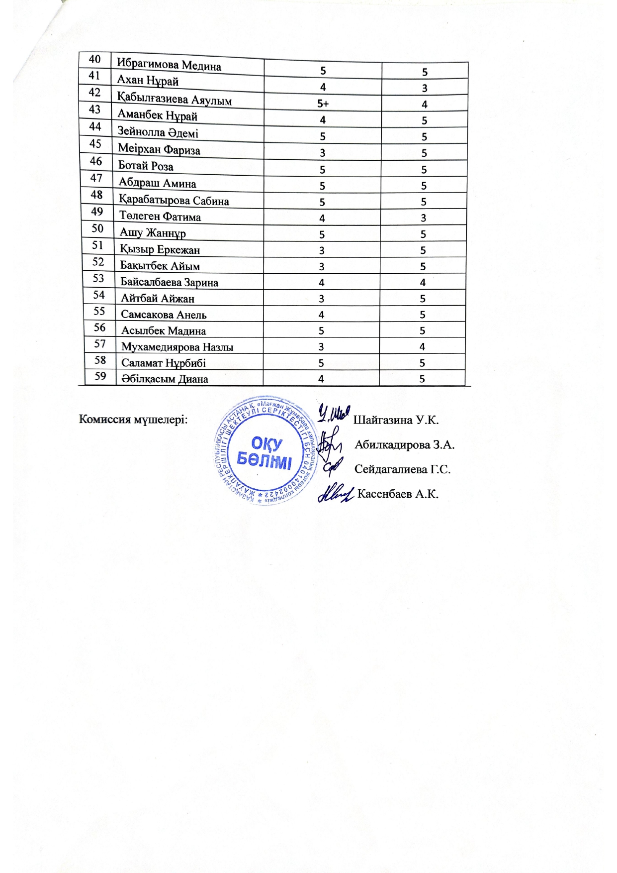 Результаты экзаменов по специальности 01140600 «Педагогика и методика преподавания языка и литературы основного среднего образования» квалификации 4S01140605 «Учитель иностранного языка»