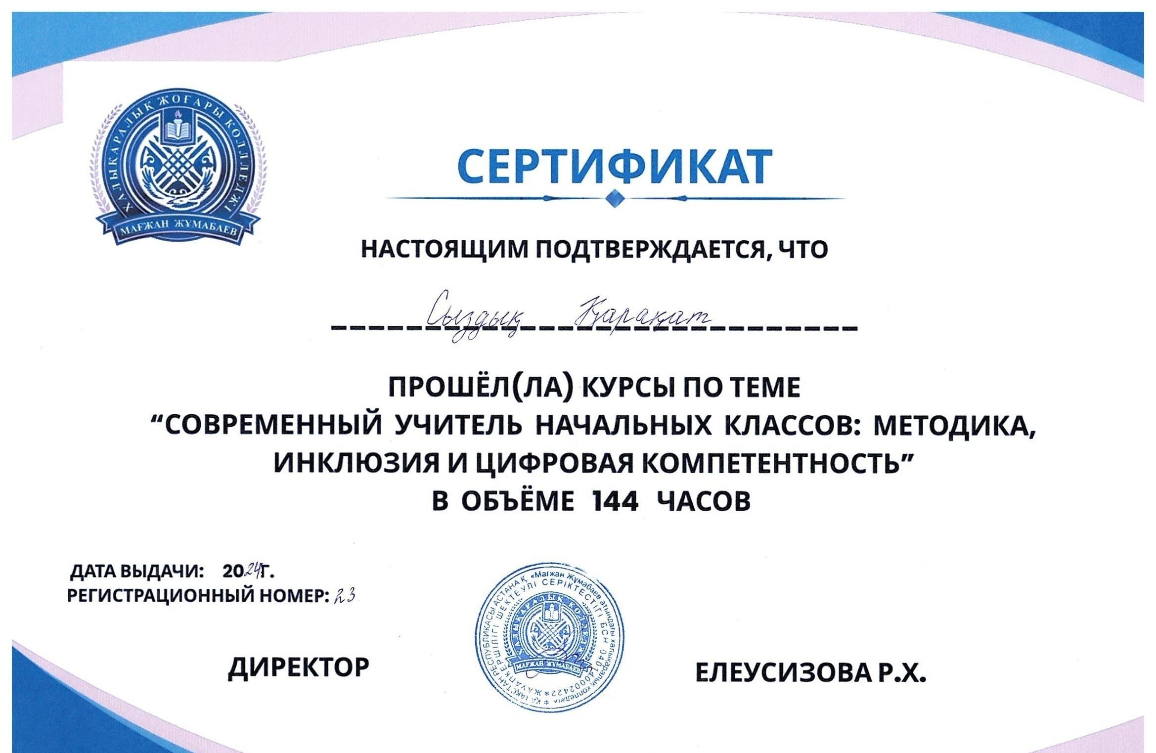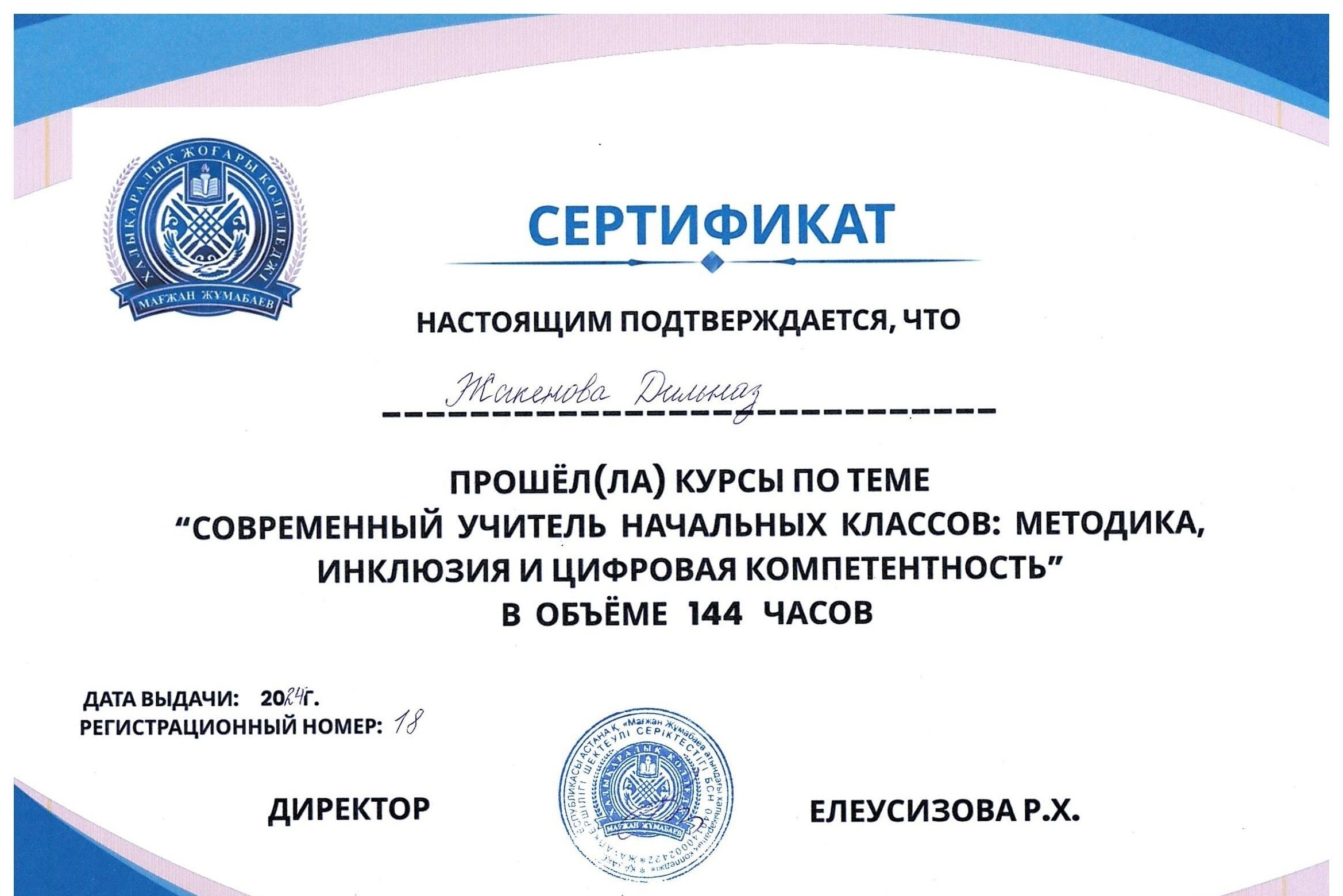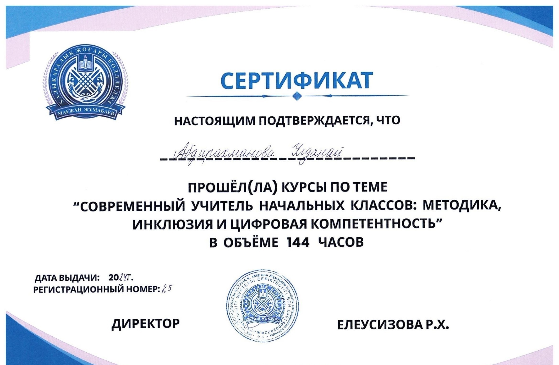 Для студентов Международного высшего колледжа Магжана Жумабаева были проведены курсы повышения квалификации по теме: «Современный учитель начальных классов: методика, инклюзия и цифровая компетентность»общим объёмом 144 часа.