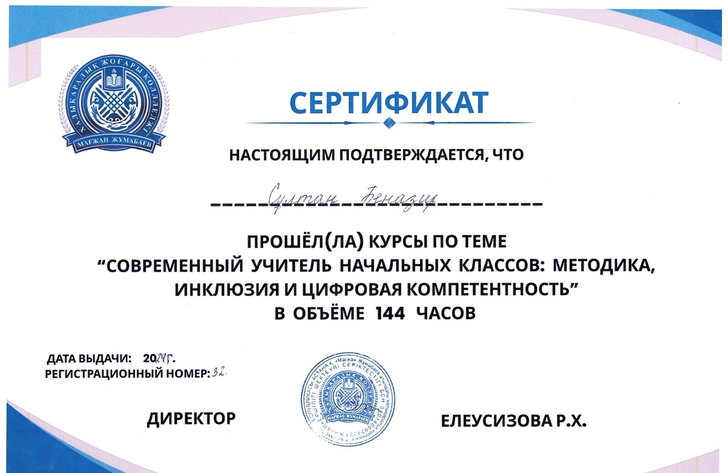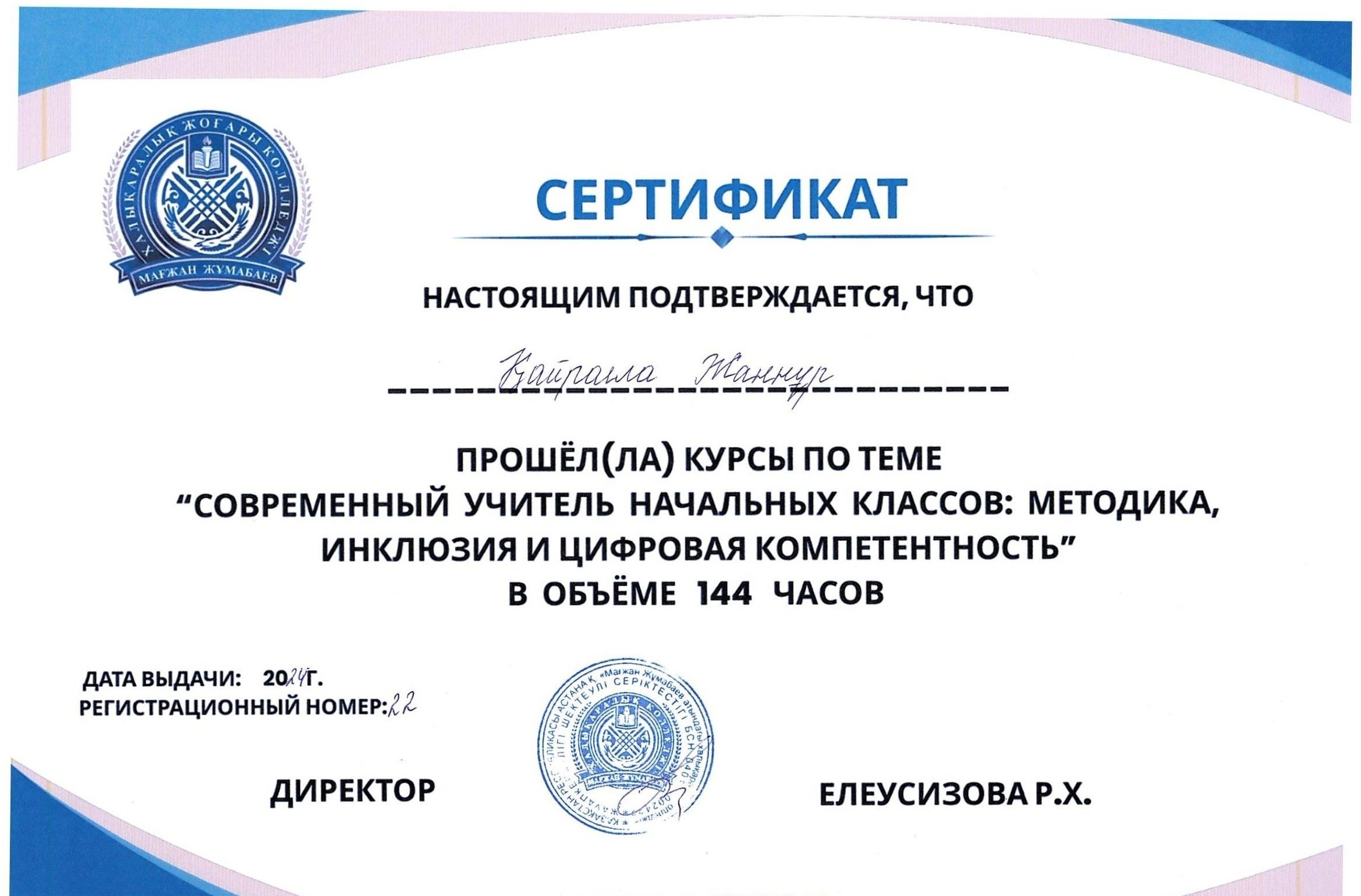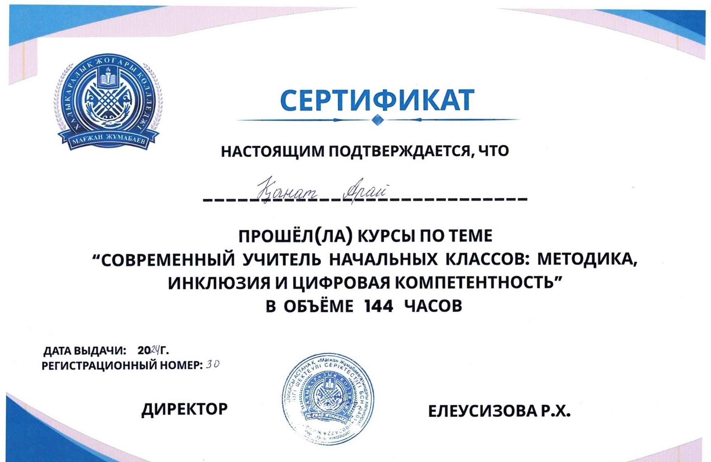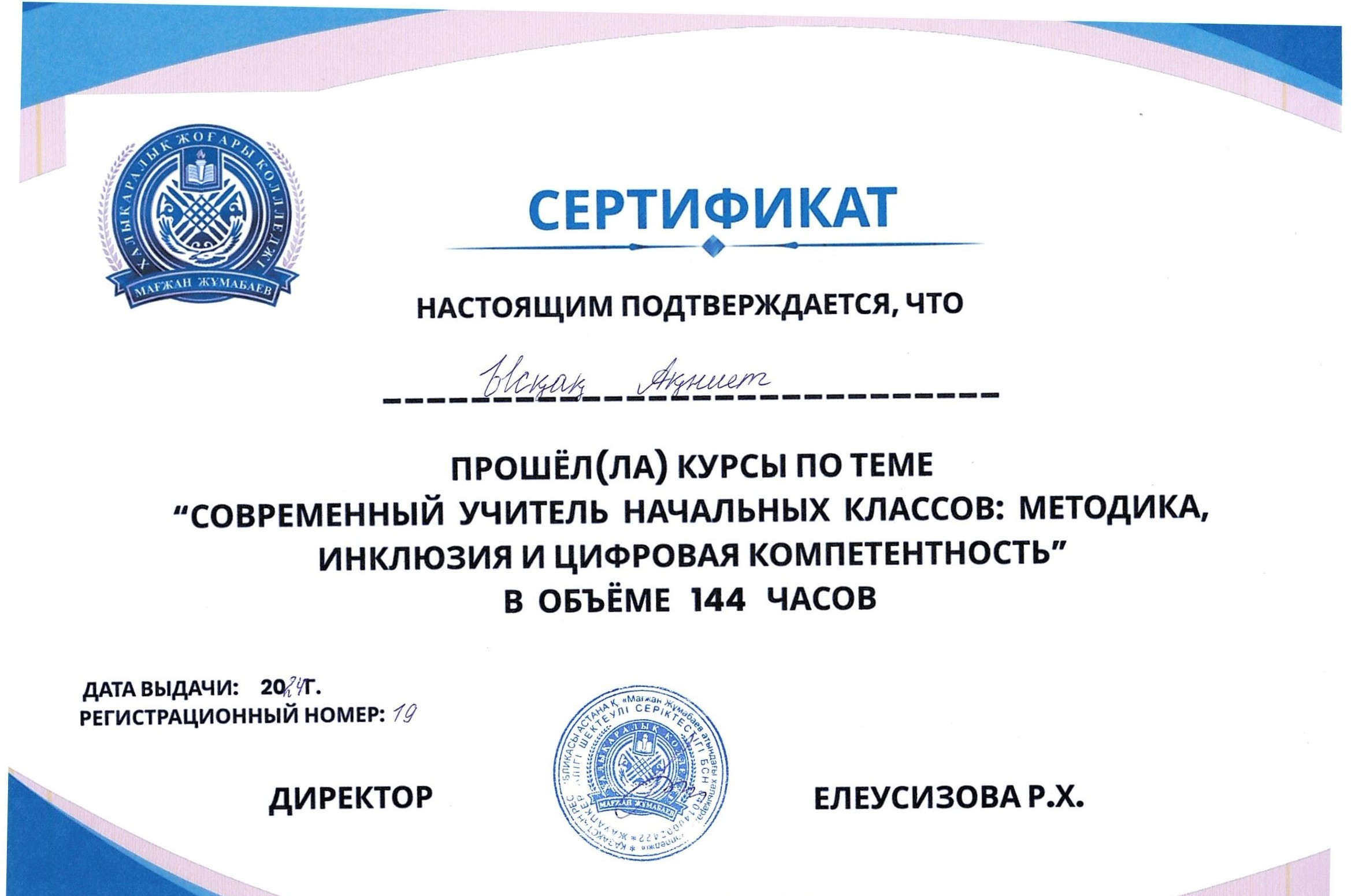 Для студентов Международного высшего колледжа Магжана Жумабаева были проведены курсы повышения квалификации по теме: «Современный учитель начальных классов: методика, инклюзия и цифровая компетентность»общим объёмом 144 часа.